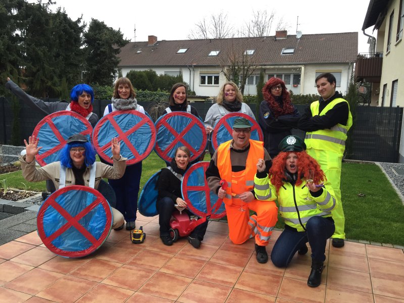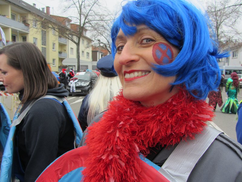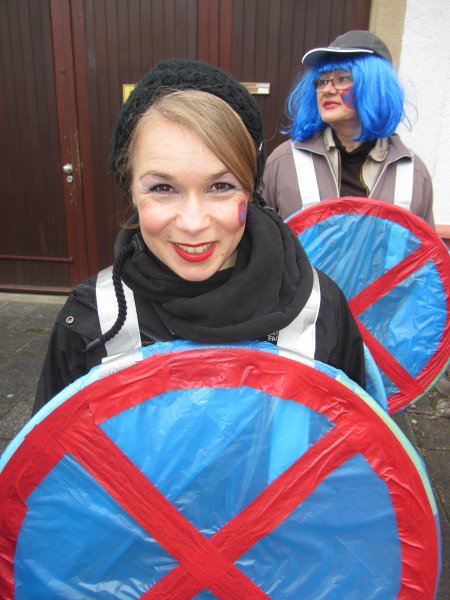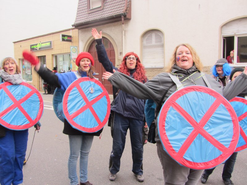 „Einfach nur Spaß haben und mit den Leuten feiern – das ist unser Motto“, beschreibt Susanne Knittel vom Friseursalon Suna, was sie sich mit ihrem Team vorgenommen hat. Das hat super geklappt, denn die 15 Mädels verkörperten ihr Thema „Farbenrausch“ so eindrucksvoll mit bunten Haaren und Gesichtern, dass man bei diesem Anblick nur gute Laune bekommen konnte. Ähnlich ging es den Narren auch bei den Leimbachstelzen, die sich mit ihren Kostümen unheimlich viel Mühe gemacht haben. „Alles selbst gemacht – von Kopf bis Fuß“, freute sich Angelika Forster über jeden bewundernden Blick – und davon gab es viele. Die Gruppe ging als Außerirdische, denn: „Wir wollen keine Kriege mehr, d’rum fliegen wir im All umher“. Damit griffen sie zwar kein lokales, aber ein leider sehr aktuelles Thema auf. Ein Motto, das auch zum Nachdenken anregte.