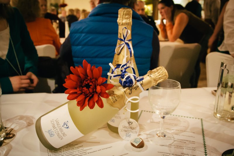 Zum Dank durften sich die frisch gewählten Sängerinnen und Sänger über eine Flasche Jubiläumssekt und leckere Jubiläumspralinchen freuen. Sabine Rebmann bedankte sich herzlich für den Einsatz aller Vereinsmitglieder, denn ehrenamtliches Engagement ist ein unverzichtbarer Beitrag für eine lebendige Gesellschaft.