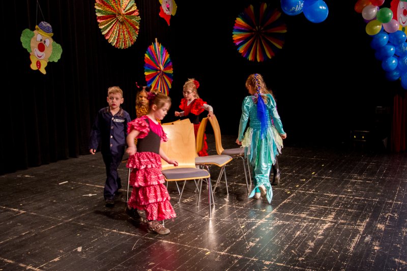 Die junge Narrenschar tummelte sich insbesondere auf der Tanzfläche vor der Bühne, wo man neben dem Herumtollen auch den besten Blick auf die Bühnendarbietungen hatte. „Kommt auf die Bühne zur Reise nach Jerusalem“, rief ihnen Annika vom Sängerbund-Team zu, und innerhalb von wenigen Sekunden hätte man das beliebte Spiel mehr als doppelt und dreifach inszenieren können.