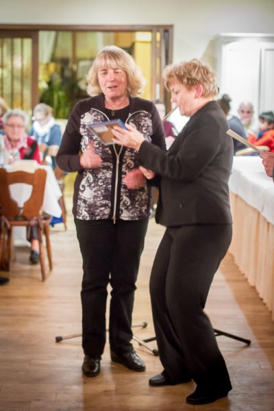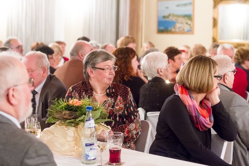 Der 2. Vorsitzende Michael Hardung begrüßte die Ehrenmitglieder herzlich und schickte Neujahrs- und Genesungswünsche an die durch Krankheit Daheimgebliebenen. D ’accord gab daraufhin Udo Jürgens Klassiker: „Ich war noch niemals in New York“ zum Besten. Mit Albert Einsteins Zitat „Wenn’s alte Jahr erfolgreich war, dann freue dich aufs neue. Und war es schlecht, ja dann erst recht“ begann 1. Vorsitzende Sabine Rebmann ihre Revue durch das vergangene, äußerst ereignisreiche 160. Jubiläumsjahr. Den Startschuss machte der Kindermaskenball, gefolgt von Auftritten der Chorgruppen beim Schwetzinger Spargelsamstag, insgesamt vier Hochzeiten und der ersten Teilnahme bei der Schwetzinger Spargelwanderung durch d’accord. Erstes Highlight im Jubiläumsjahr war das Geburtstagskonzert im Juli im Lutherhaus unter Beteiligung aller vier Chorgruppen. Besonders hervorzuheben ist hierbei das Aufleben des alten Sängerspruchs „Es blühe fort der Sängerbund“, den Chorleiterin Elena Spitzner noch kurzfristig für den Kinder- und Jugendchor und die SchwetSingers modernisiert und umgeschrieben hat. Weiter ging es im Oktober mit dem SchwetSingers Krimi-Musical „Noch ein Krimi für die Mimi“, das an zwei Tage in der alten Wollfabrik aufgeführt wurde. Letztes großes Highlight des Jahres und krönender Abschluss war das 46. Weihnachtkonzert bei Kerzenschein mit Stargast Kathy Kelly. Events auf die der älteste – mit Sicherheit auch einer der aktivsten Vereine Schwetzingens – in seinem Jubiläumsjahr sehr stolz sein darf.
