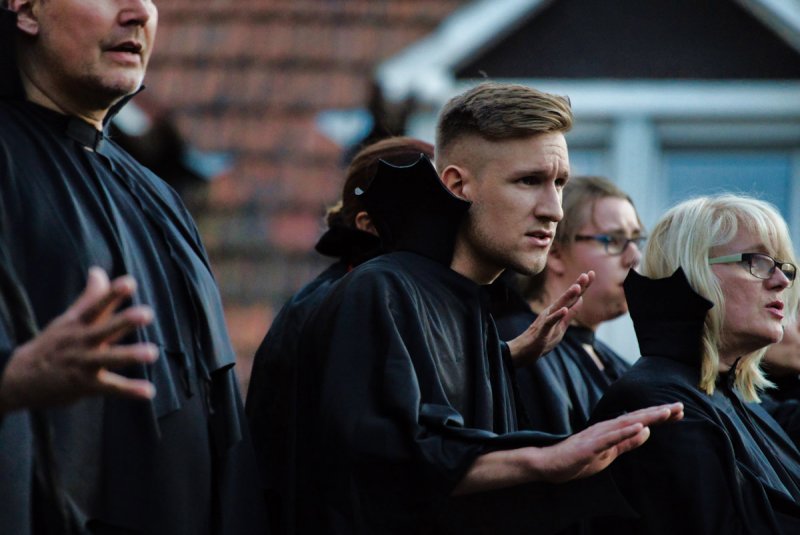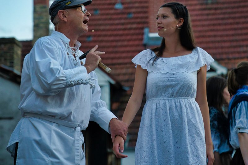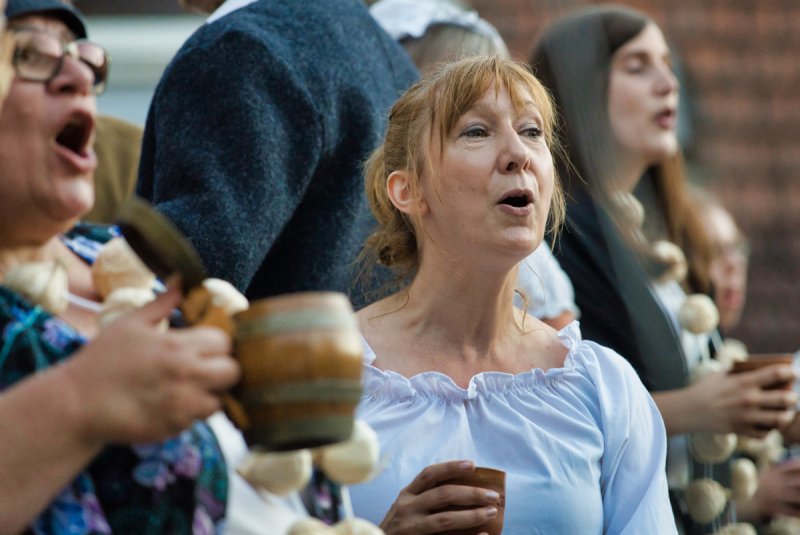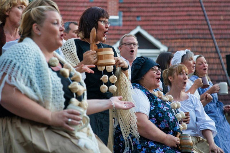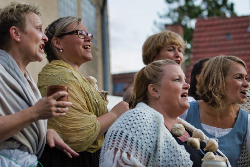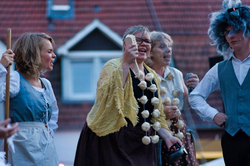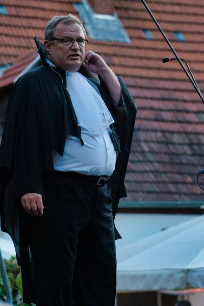 In schöner Innenhof, nedde un fleißige Leut von der AWO, die hilfsbereide Männer vom städdische Bauhof, schönes Wedder, viele Besucher sinn do. Klasse Musiker un klasse der Chor, die ELENA schdehd uff der Seid un ned davor. Mid Bond – Queen un Vampire, dud der Chor uns Zuhörer manipuliere. Denn wenn ä Lied verklunge, sinn mir vor Begeischderung zum Applaudiere gezwunge. Der Rudolphe Winfried hod den Abend begonne, ich sidz im Schadde, er blinzeld in die Sonne. Der Chor von de SchwetSingers besedzd mit viele Solischde un als Cosette zauberd Elena die kleine Sophia Dalkidou aus der Kinnerchor-Kischde. Mit de viele dolle Solischde im Chor, heb ich am beschde käns hervor. Denn jeder gab sein Beschdes an dem Dag, ich kennd ebber vergesse was ich ned mag.